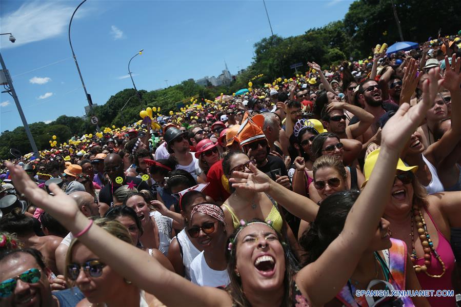 SAO PAULO, 1 feb (Xinhua) -- La gente tomó parte en el desfile de "Monobloco" durante los festivales de Carnaval en Sao Paulo, Brasil, el 31 de enero. (Xinhua/Rahel Patrasso)