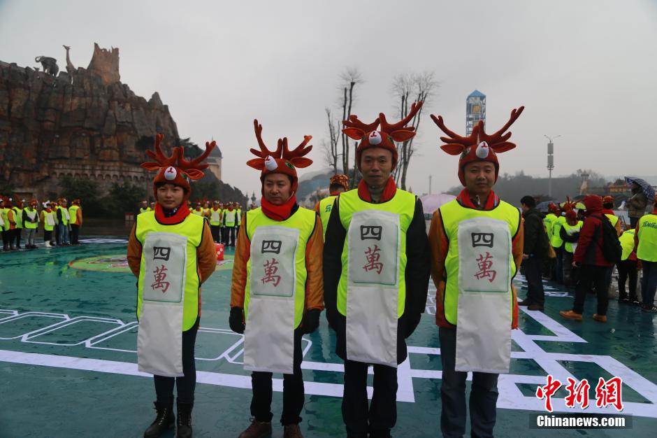 Chongqing,02/02/2016(El Pueblo en Línea)- Organizan una partida de "mahjong humano" en Chongqing, suroeste de China, el 1 de febrero de 2016. Los 108 participantes vistieron trajes de fichas de mahjong para jugar al popular juego.(Chinanews.com/Zhong Xin)