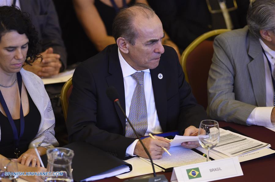 El ministro brasile?o de Salud, Marcelo Castro, participa en la Reunión Extraordinaria de Ministros de Salud del Mercado Común del Sur (Mercosur) y estados asociados en la sede de Mercosur en Montevideo, capital de Uruguay, el 3 de febrero de 2016. (Xinhua/Nicolas Celaya)