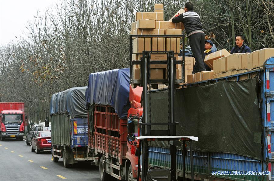 HANGZHOU, 2 feb (Xinhua) -- Trabajadores de una tienda en línea transportaron recientemente sus productos en el pueblo Qingyanliu en la ciudad de Yiwu, en la provincia oriental china de Zhejiang. El citado pueblo apodado "el pueblo número uno del comercio electrónico de China", también se conoce como el pueblo de Taobao. La proporción de la industria terciaria en PIB aumentó a 49.8% en Zhejiang desde el a?o 2011 hasta 2015, sobrepasando la industria secundaria de 45,9% por primera vez en 2015. La industriaterciaria contribuyó el 65,7% del incremento en la economía provincial en 2015. (Xinhua/Tan Jin)