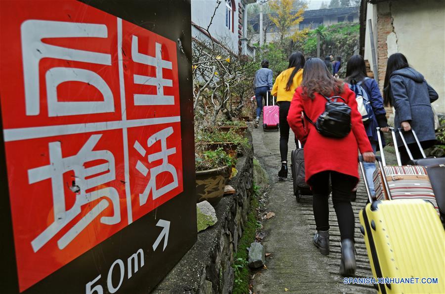 HANGZHOU, 2 feb (Xinhua) -- Turistas fueron a una casa rural para vacaciones en el distrito Deqing, en la provincia china de Zhejiang.