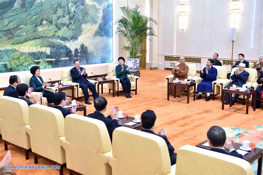 El máximo asesor político de China, Yu Zhengsheng, se reúne con líderes de grupos religiosos nacionales antes de la Fiesta de la Primavera en Beijing, capital de China, el 4 de febrero de 2016. (Xinhua/Li Tao)