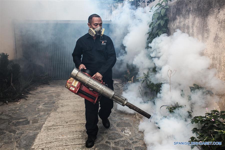 Un empleado fumiga para luchar contra Zika, Dengue y Chikungunya, en el sector de El Bosque del Chaco Township, Caracas, Venezuela, el 5 de febrero de 2016.