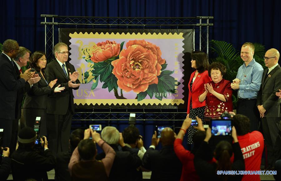 NUEVA YORK, 5 feb (Xinhua) -- Una nueva estampilla para conmemorar el A?o Nuevo Lunar chino, el A?o del Mono, fue presentada y puesta a la venta hoy en todo Estados Unidos.