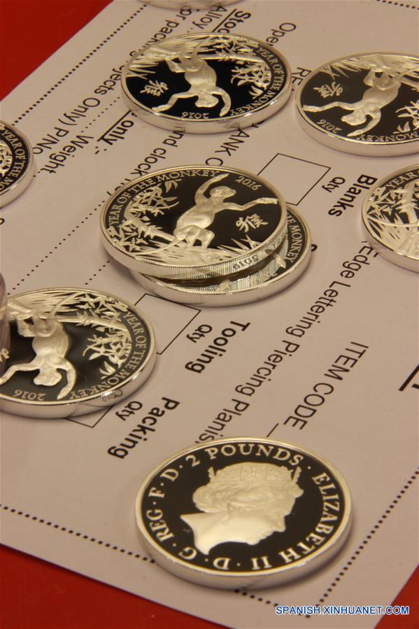 LONDRES, 5 feb (Xinhua) -- La Real Casa de Moneda emitió hoy una serie de monedas conmemorativas con la figura de un mono juguetón para celebrar el ya próximo A?o Nuevo Chino el 8 de febrero.