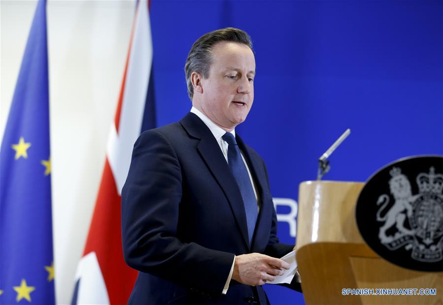 El primer ministro británico, David Cameron, se dirige a una conferencia de prensa al final de una cumbre de la UE de dos días extraordinaria en el Consejo Europeo en Bruselas, Bélgica, 19 de febrero de 2016.(Xinhua/Ye Pingfan)