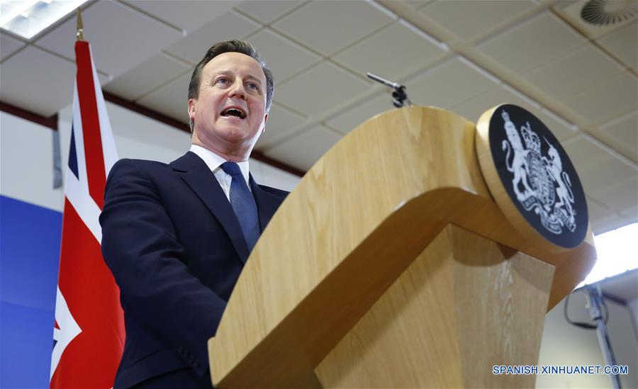 El primer ministro británico, David Cameron, se dirige a una conferencia de prensa al final de una cumbre de la UE de dos días extraordinaria en el Consejo Europeo en Bruselas, Bélgica, 19 de febrero de 2016.(Xinhua/Ye Pingfan)