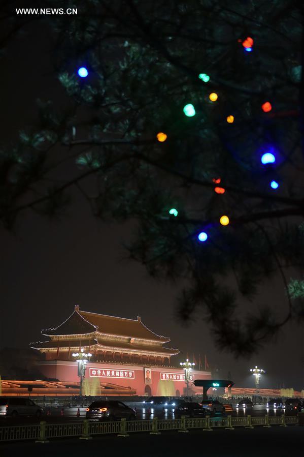 De acuerdo con la Comisión Municipal de la Administración Municipal y el Medio Ambiente, durante las “Dos Sesiones” la iluminación de edificios emblemáticos de la plaza Tiananmen y a lo largo de la Avenida de la Paz Permanente estará encendida entre las 18:25 y las 23:00 horas, desde el 3 al 6 de marzo, como es ya costumbre durante las principales celebraciones nacionales. (Foto: Chen Yehua)