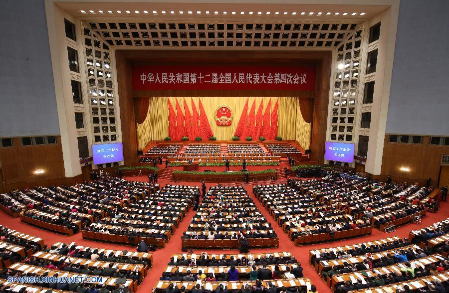 La XII Asamblea Popular Nacional inaugura el sábado por la ma?ana su cuarta sesión en el Gran Palacio del Pueblo, en el centro de Beijing.(Xinhua/Yao Dawei)