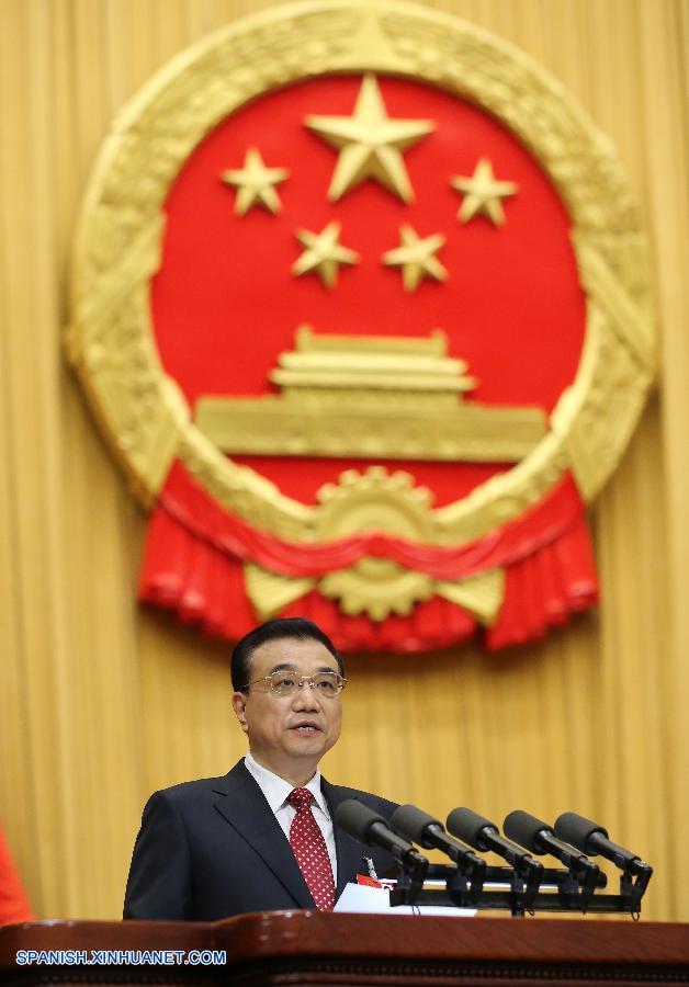 El primer ministro, Li Keqiang, presenta el Informe sobre la Labor del Gobierno en en la inauguración de la sesión anual de la Asamblea Popular Nacional (APN), máximo órgano legislativo del país, en Beijing, capital de China, el 5 de marzo de 2016. (Xinhua/Liu Weibing)