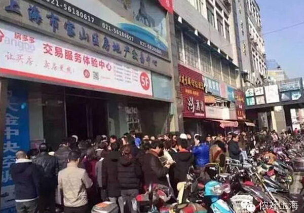 Tras el Festival de Primavera de este a?o, los internautas publican una foto mostrando una fila larga en un centro de transacción de bienes raíces de Shanghai. (Foto: Cuenta pública“NonghaoShanghai”en Wechat)