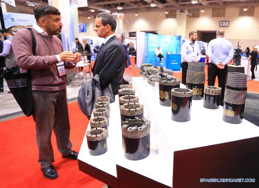 Los visitantes observanmuestras de mineraldurante laPDAC 2016,la conferenciaanual de cuatro díascomenzó eldomingo.(Xinhua/Zou Zheng)