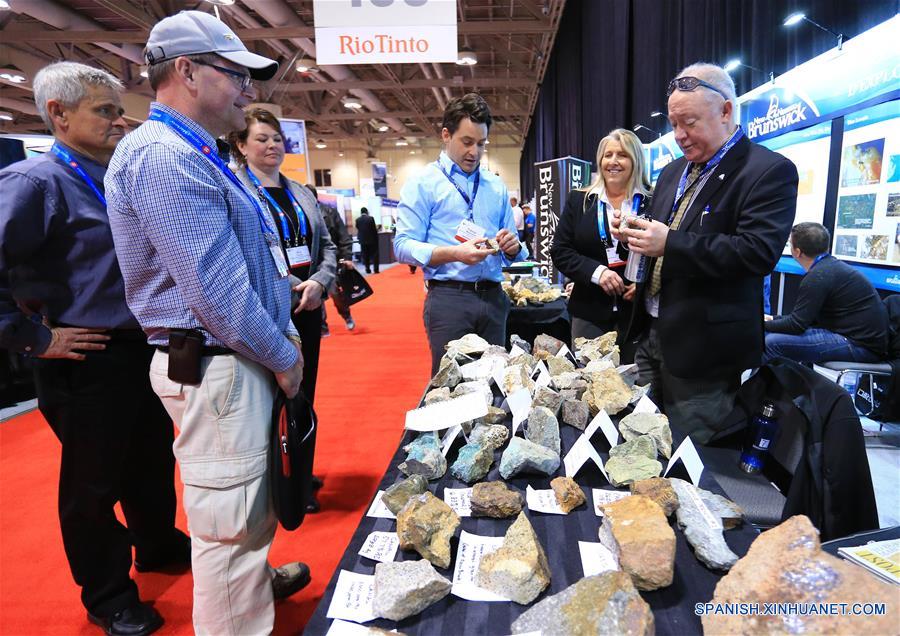 Los visitantes observan muestras de mineral durante la PDAC 2016, la conferencia anual de cuatro días comenzó el domingo. (Xinhua/Zou Zheng)