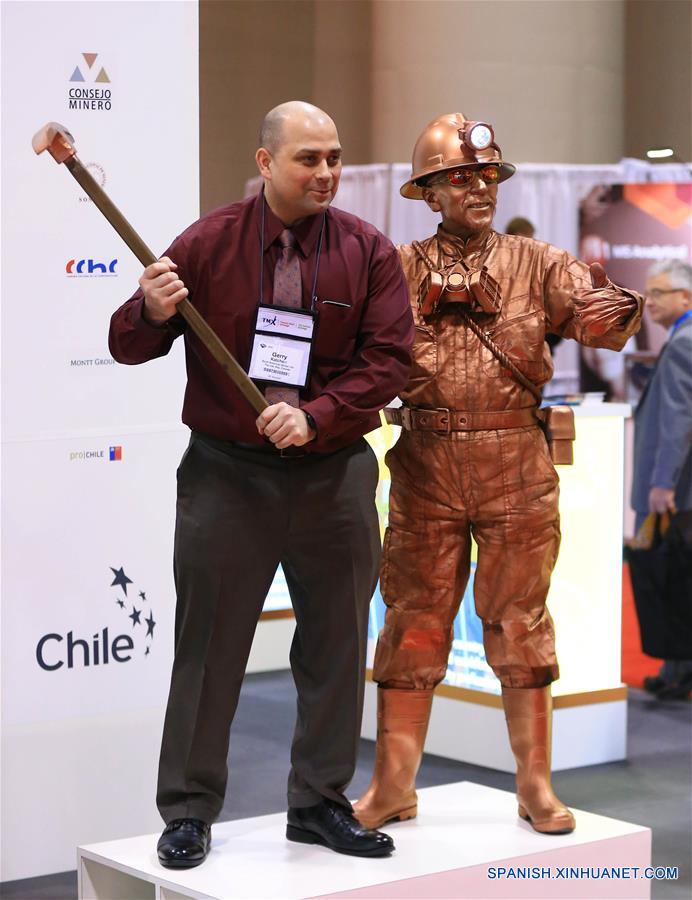 Los visitantes observanmuestras de mineraldurante laPDAC 2016,la conferenciaanual de cuatro díascomenzó eldomingo. (Xinhua/Zou Zheng)