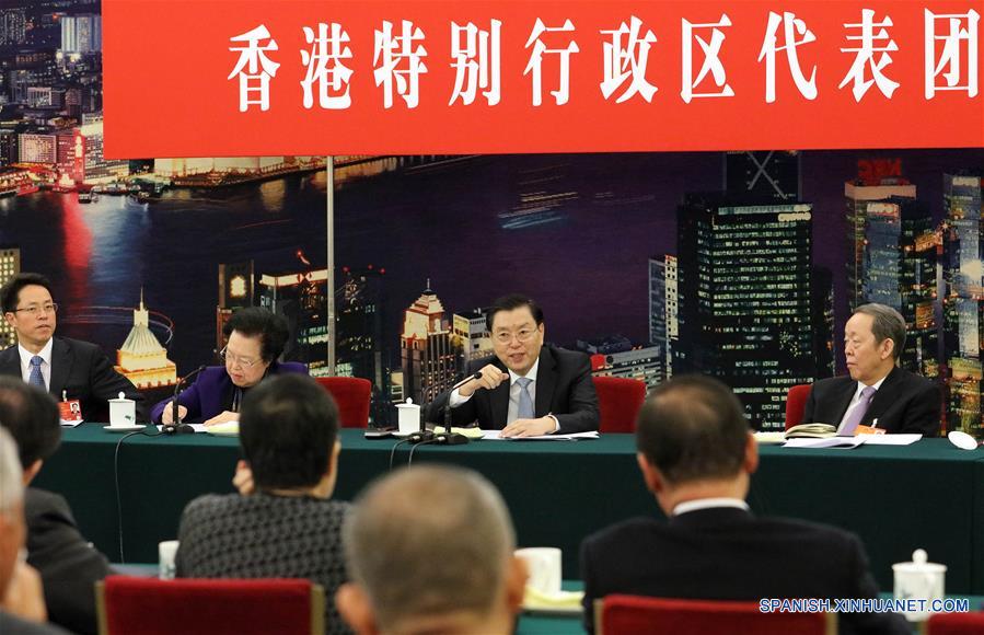 Zhang, presidente del Comité Permanente de la Asamblea Popular Nacional (APN), hizo las declaraciones al participar en las deliberaciones de grupo de los legisladores nacionales de Hong Kong y Macao, dos regiones administrativas especiales.