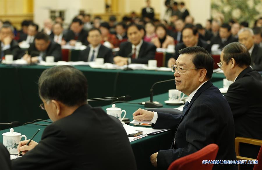 Zhang Dejiang, el presidente del Comité Permanente de la APN, habla en una deliberación grupo de diputados de la provincia de Anhui de la sesión anual de la APN en Beijing, capital de China, 7 de marzo de 2016. ( Xinhua / Ju Peng)