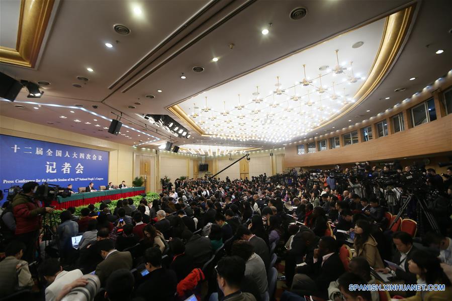 El canciller chino, Wang Yi da una conferencia de prensa celebrada en Beijing en paralelo a la sesión anual de la Asamblea Popular Nacional en Beijing, capital de China 8 de marzo de 2016.(Xinhua/Li Xin)