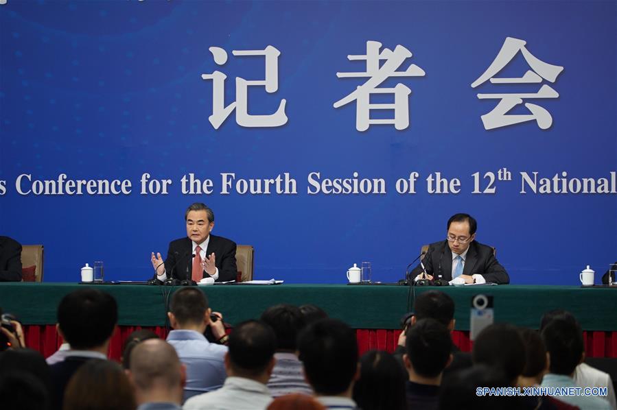 El canciller chino, Wang Yi da una conferencia de prensa celebrada en Beijing en paralelo a la sesión anual de la Asamblea Popular Nacional en Beijing, capital de China 8 de marzo de 2016.(Xinhua/Li Xin)