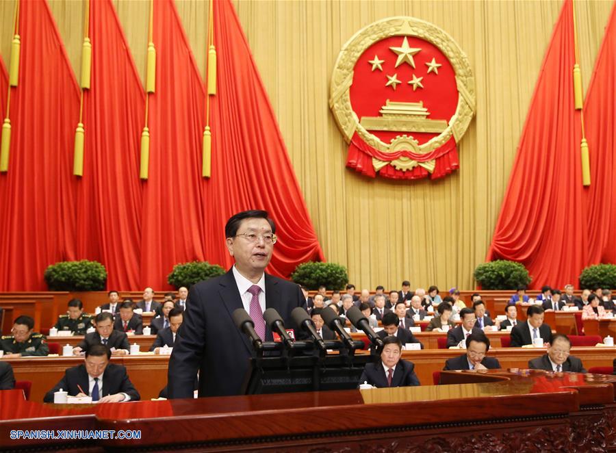 El máximo legislador de China, Zhang Dejiang, pronuncia el informe de trabajo anual de la APN en Beijing, capital de China, el 9 de marzo de 2016. (Xinhua/Yao Dawei)