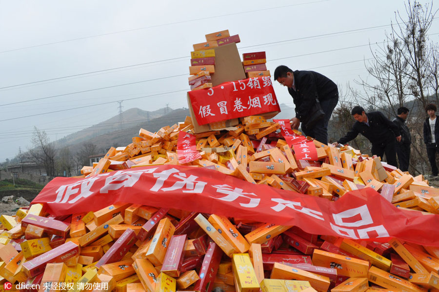 Licor y alimentos falsificados serán destruídos en Zitong, provincia de Guizhou.