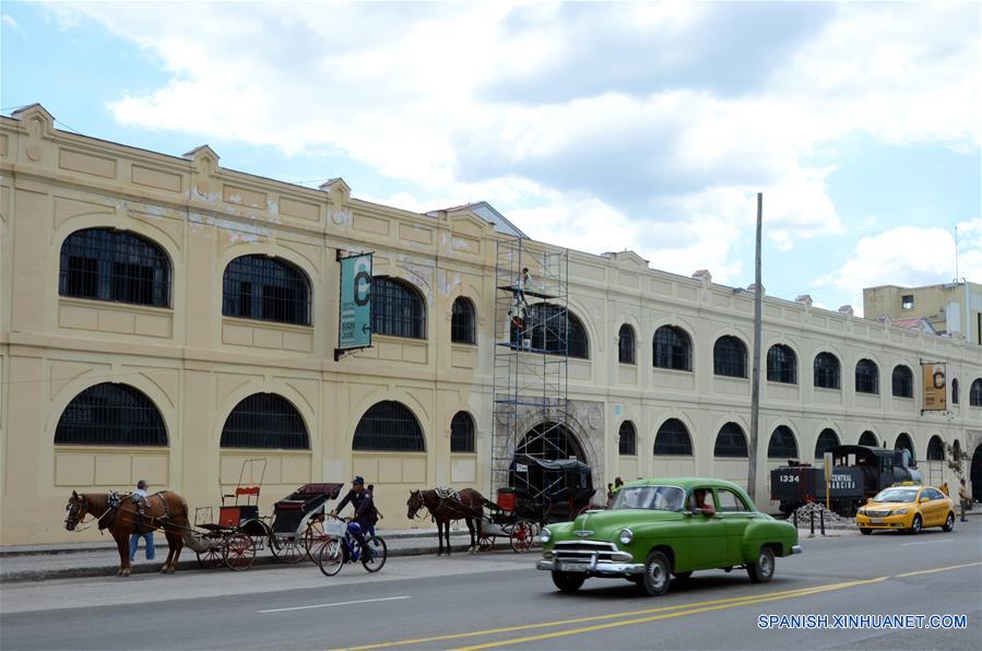Dos empleados pintan una fachada de un edificio durante las obras de renovación antes de la visita del presidente Barack EE.UU. de Obama, en La Habana, Cuba, el 15 de marzo de 2016. (Xinhua / Joaquín Hernández)