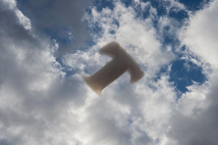 Un logo de Deutsche Telekom creado con agua, jabón y helio, en el cielo sobre el lugar donde se celebraCeBIT, la feria de ordenadores y software más grande del mundo, en Hannover, Alemania, el 13 de marzo de 2016. [Foto de agencias]