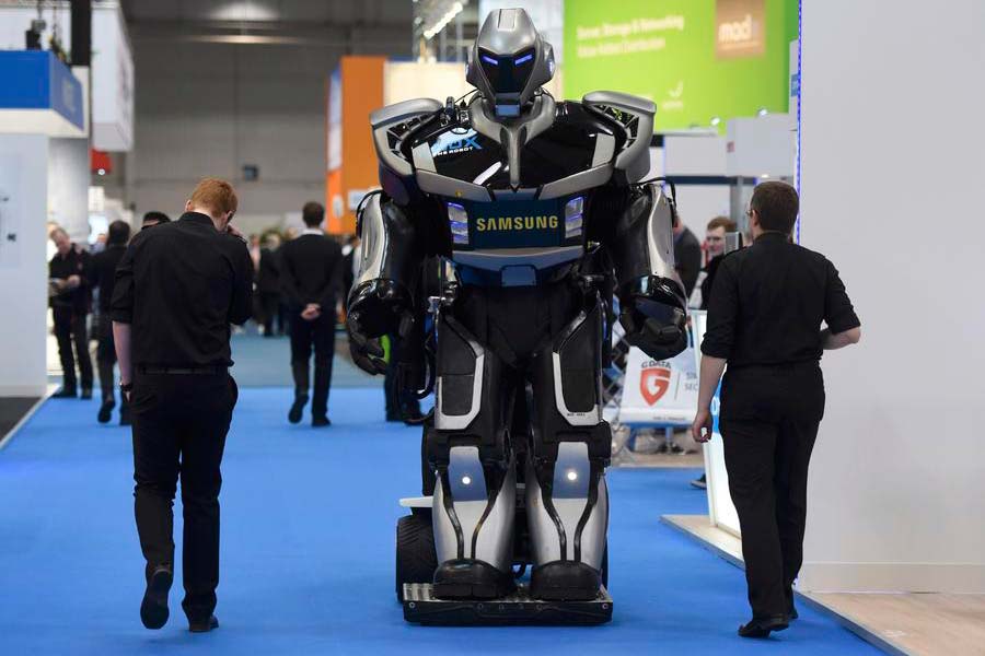 El robot NOX enCeBIT, la feria de ordenadores y software más grande del mundo, en Hannover, Alemania, el 13 de marzo de 2016. [Foto de agencias]