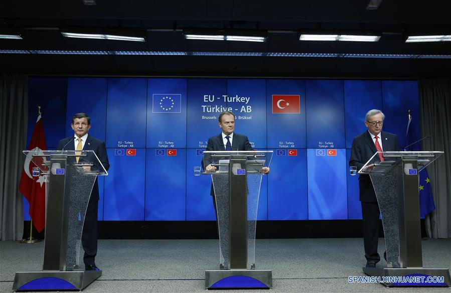BRUSELAS, 18 mar (Xinhua) -- La Unión Europea (UE) y Turquía lograron finalizar hoy por la tarde un acuerdo sobre migración al término de una cumbre de dos días de la UE encaminada a abordar de manera conjunta la crisis migratoria.