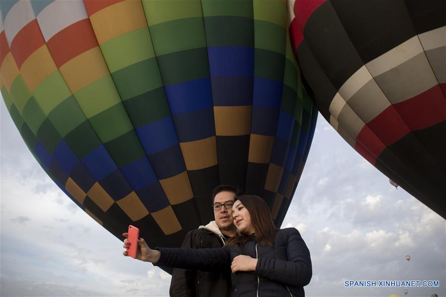 SAN MARTIN, 20 de mar (Xinhua) -- La gente tomó selfie durante la Reunión Nacional de Globos de Aire Caliente 2016, en San Martin de las Piramides, estado de México, México, el 20 de marzo. (Xinhua/Alejandro Ayala)