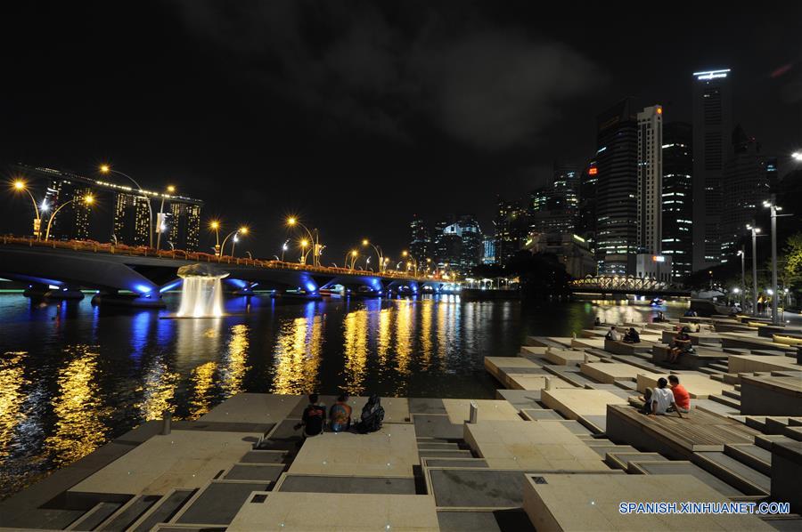 Foto tomada el 19 de marzo el a?o 2016 muestra Marina Bay Area de Singapur durante la Hora del Planeta en 20:30 hora local. (Xinhua / Then Chih Wey)
