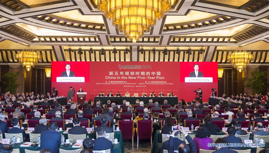 El viceprimer ministro chino Zhang Gaoli se dirige a la ceremonia de apertura del Foro de Desarrollo de China 2016 en Beijing, capital de China, el 20 de marzo de 2016. (Xinhua / Wang Ye)