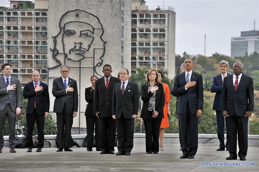 Obama rinde al héroe nacional cubano José Martí antes de reunirse con el presidente cubano Raúl Castro en La Habana . (Xinhua / Str)