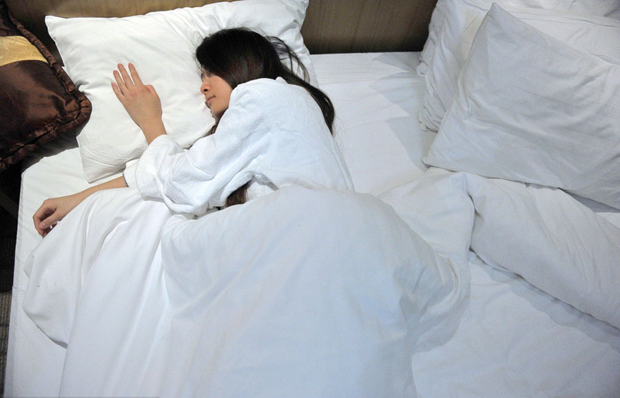 Zhang Xinyan, una estudiante de doctorado de la Universidad de Nankai de Tianjin, y nacida en la década de los 90, trabaja a tiempo parcial como probadora del sue?o. Ella prueba un hotel en Beijing, de 13 de diciembre de 2013.