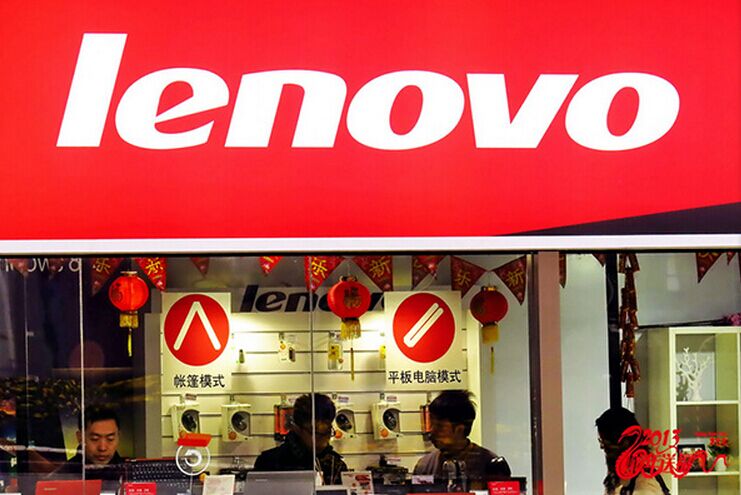 Clientes compran computadoras en una tienda de Lenovo en Shanghai.