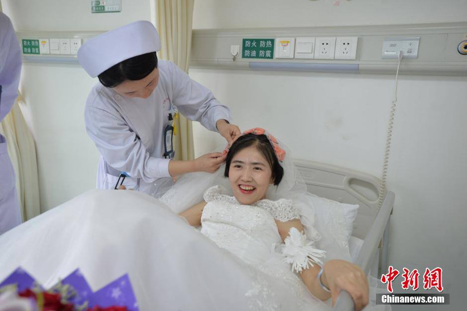 Un hombre propone matrimonio a su novia que padece cáncer. Ellos han estado enamorados durante 8 a?os, pero su relación no era aceptada por sus padres. Después de que a ella este mes le diagnosticaran cáncer, él pidió una licencia laboral indefinida para poder cuidar de su novia. Ahora, ella se encuentra estable. Ambos residen en Hubei. [Foto: Chinanews.com]