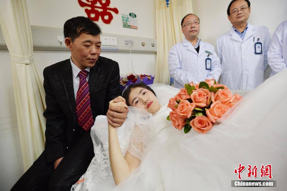 Un hombre propone matrimonio a su novia que padece cáncer. Ellos han estado enamorados durante 8 a?os, pero su relación no era aceptada por sus padres. Después de que a ella este mes le diagnosticaran cáncer, él pidió una licencia laboral indefinida para poder cuidar de su novia. Ahora, ella se encuentra estable. Ambos residen en Hubei. [Foto: Chinanews.com]