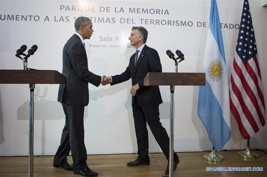 BUENOS AIRES, 24 mar (Xinhua) -- Los presidentes Mauricio Macri (Argentina) y Barack Obama (Estados Unidos) ofrecieron hoy una conferencia conjunta de prensa en el Parque de la Memoria en Buenos Aires (capital), en la que se refirieron al respeto de los derechos humanos.