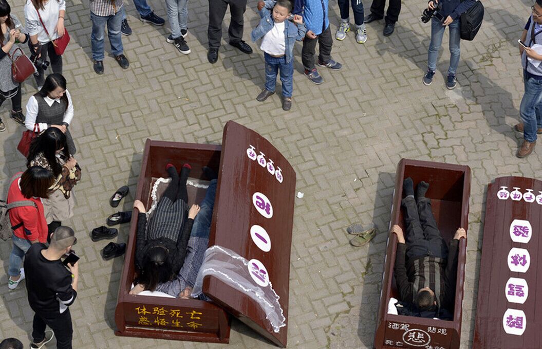Conducir en estado de embriaguez: invitan en Chongqing a “descansar”dentro de un ataúd como llamada de atención