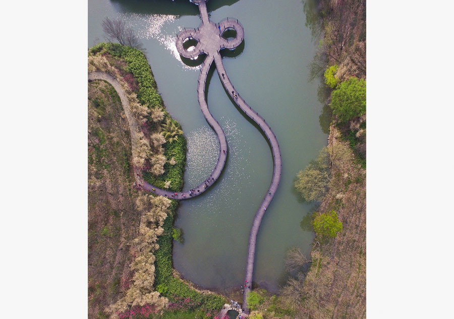 En el lago Nanhu de Xinyang, provincia de Henan, los puentes están dise?ados como un clásico nudo chino. La vista aérea es impresionante.