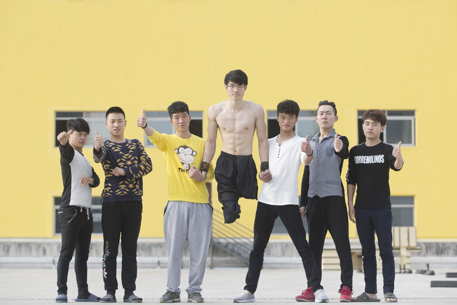 Shen Dacheng posa en una foto con sus amigos en Hefei, provincia de Anhui, el 7 de abril de 2016.