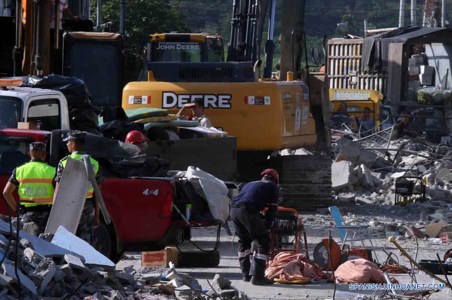 Imagen cedida por la Agencia Pública de Noticias del Ecuador y Suramérica ANDES, de empleados trabajando entre escombros luego del sismo, en Pedernales, en la provincia de Manabí, Ecuador, el 18 de abril de 2016. La Fiscalía General de Ecuador dio a conocer el lunes la lista de 376 personas muertas durante el sismo de 7,8 grados en la escala de Richter ocurrido la noche del sábado y que dejó también más de 2,000 heridos.(Xinhua/Micaela Ayala V./ANDES)