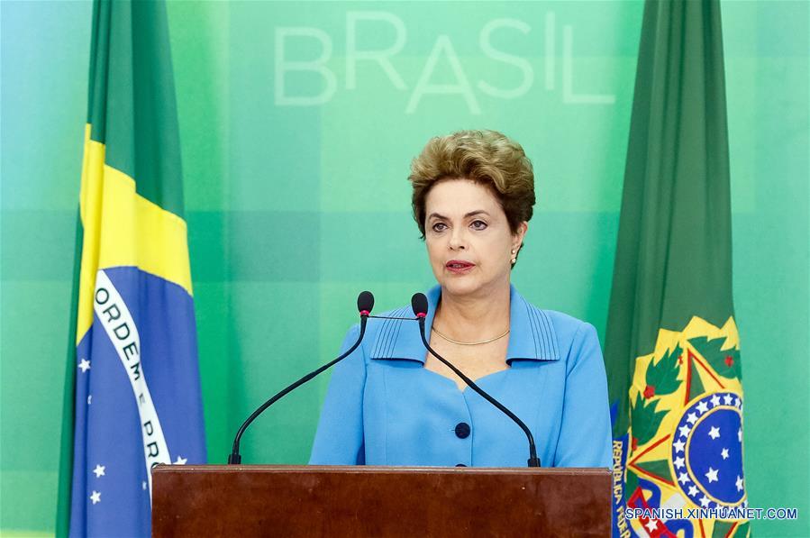 Imagen cedida por la Presidencia de Brasil de la presidenta brasile?a Dilma Rousseff realizando una declaración en el Palácio do Planalto, en Brasilia, Brasil, el 18 de abril de 2016. La presidenta de Brasil, Dilma Rousseff, afirmó el lunes que se enfenta a un golpe de Estado. La Cámara de Diputados de Brasil respaldó ayer domingo el proceso contra Rousseff que tramitará ahora el Senado para decidir si finalmente se la juzga con miras a su destitución. (Xinhua/Roberto Stuckert Filho/Presidencia de Brasil)
