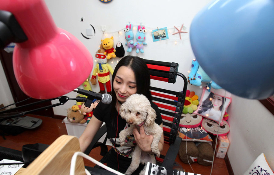 Mi graba en directo en una habitación en Zhengzhou, provincia de Henan, el 19 de abril de 2016.