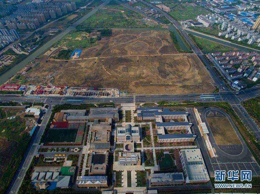 Changzhou,21/04/2016(El Pueblo en Línea)-Una vista aérea de la escuela de idiomas extranjeros de Changzhou en la provincia de Jiangsu. La escuela está situada a 100 metros del lugar donde antes había tres fábricas de productos químicos. Casi 500 estudiantes han sido diagnosticados con problemas de salud que van desde una simple dermatitis hasta leucemia en la escuela supuestamente por contaminación proveniente de las antiguas fábricas desde que la escuela se trasladó a su actual campus en septiembre. [Foto/Xinhua]