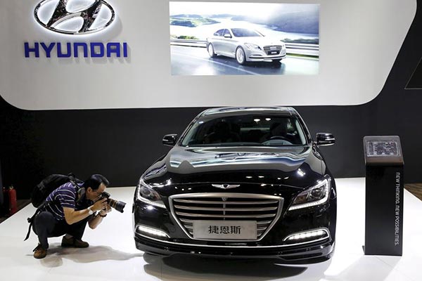 Un visitante hace fotos al modelo Hyundai Genesis durante la exposición de automóviles importados en Beijing, China, en esta foto de archivo del 24 de septiembre de 2015. [Foto/Agencias]