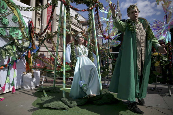 “Sue?o de una noche de verano” durante un evento para celebrar el día de St George en Londres. [Foto: Neil Hall/REUTERS]