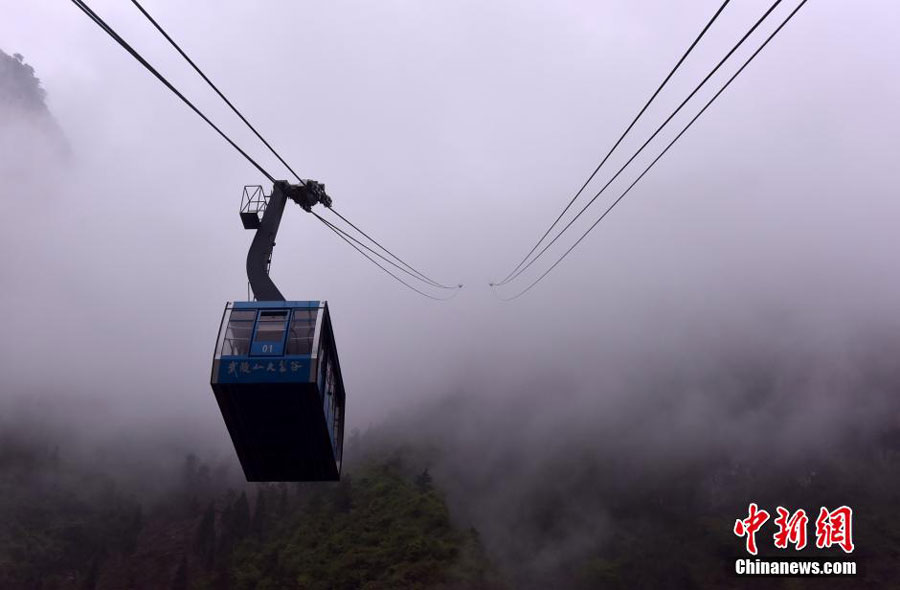Chongqing,25/04/2016(El Pueblo en Línea)- El teleférico Wu Ling Tai Dou, aclamado como el "funicular más empinado de Asia", abrió a los turistas en la monta?a Wuling, en la provincia de Chongqing. Durante el ascenso, su pendiente mide 42,6 grados.