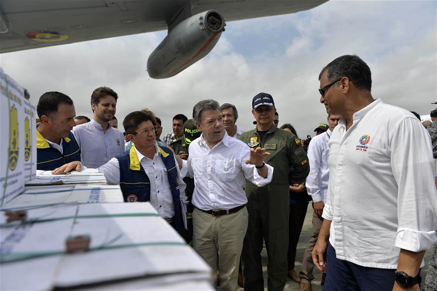 Los mandatarios no ofrecieron declaraciones a la prensa, porque de inmediato recorrieron el barrio Tarqui en Manta, una zona hotelera y residencial que quedó destruido por el evento natural.