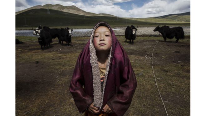Frayer también ganó el premio de la categoría profesional Gente, por su serie sobre la vida de los nómadas tibetanos en el condado de Yushu, Qinghai, China. En esta imagen, un joven monje budista posa con su manada de yaks. Por primera vez, dos categorías profesionales han sido ganadas por un mismo fotógrafo en el mismo a?o (Foto: Cortesía de Sony World Photography Awards).