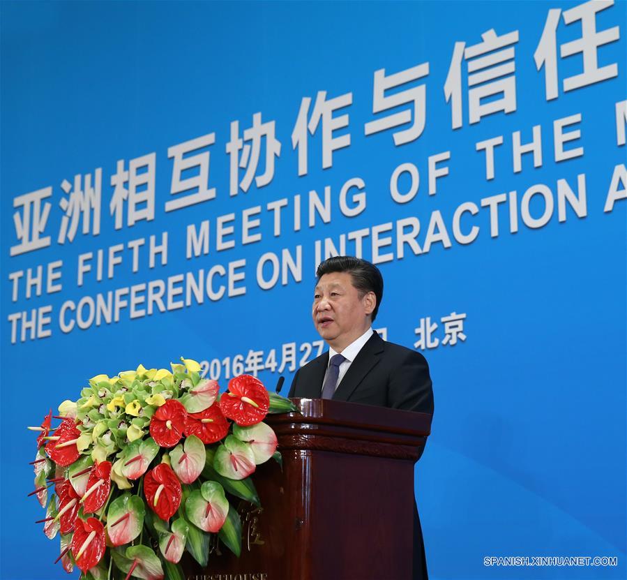 BEIJING, 28 abr (Xinhua) -- El presidente chino, Xi Jinping, se dirigió hoy jueves a los asistentes a la ceremonia de inauguración de la quinta reunión de cancilleres de la Conferencia sobre Interacción y Medidas de Construcción de Confianza en Asia (CICA, por sus siglas en inglés), que se celebra en Beijing.